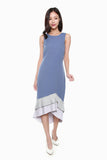 Abigail Tiered Asymmetrical Pleated Hem Dress in Blue
