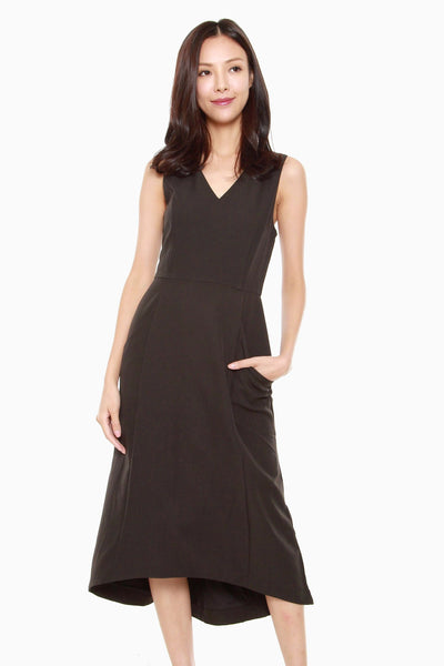 Feel empowered in this dress. An everyday dress, you can take it anywhere from a work meeting to a dinner date. Designed with a slight asymmetry at the hem and comes with 2 functional front pockets as well as a concealed back zipper.